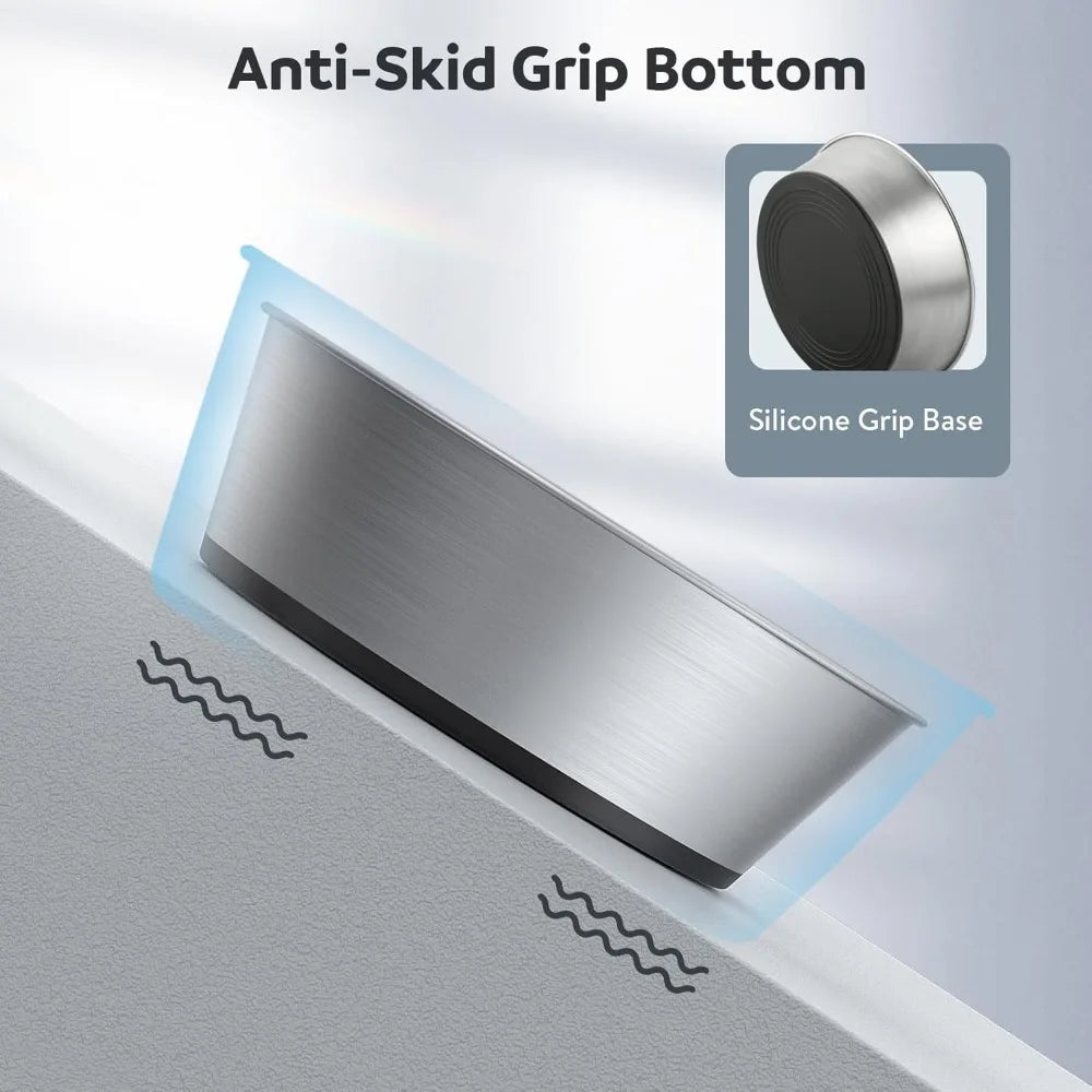 Keep your medium-sized dog's meals clean and mess-free with this set of 2 heavy-duty stainless steel bowls. Made from 304 stainless steel with a non-slip rubber base, they’re built to last and designed for everyday feeding.