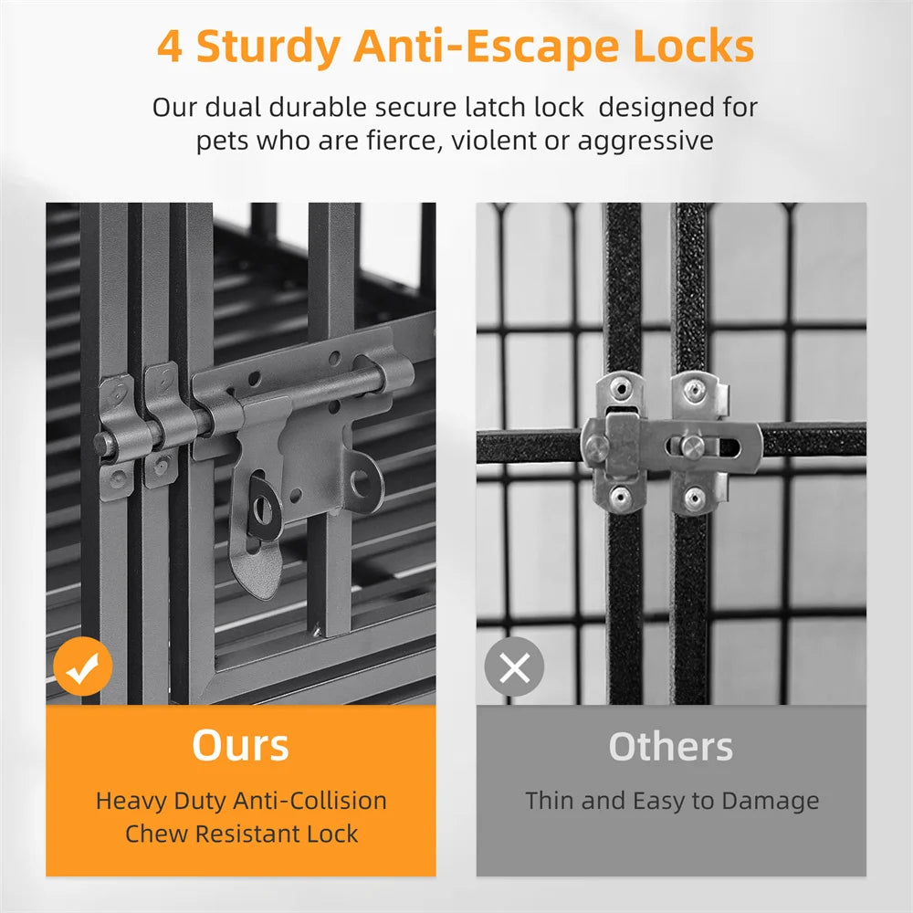 Designed for universal dog breeds, the crate features an oversized interior to accommodate bigger dogs and provide ample space for standing, turning, and resting. Its stackable design helps you maximize space, whether you’re expanding a setup at home or organizing multiple crates in a kennel. The combination of sturdy iron framing, a removable tray, and smooth-rolling wheels makes cleaning, moving, and storage effortless.