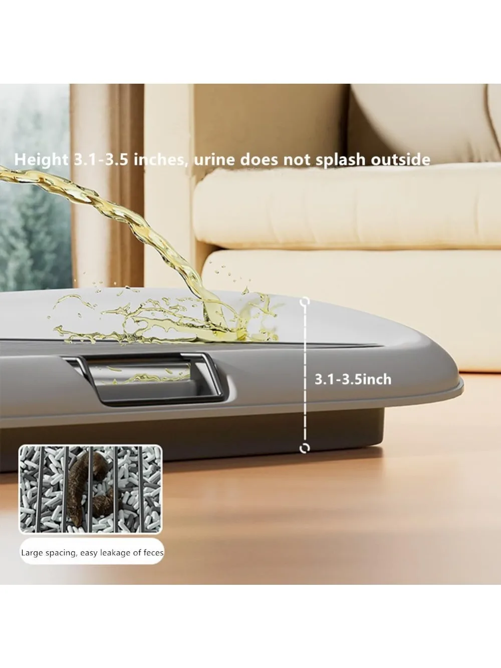 - The grid spacing is appropriate, it won't get stuck on pets' feet, and it can easily leak urine or feces. The grid can be separated, making cleaning easier. You can place a urine pad or cat litter in the basin.