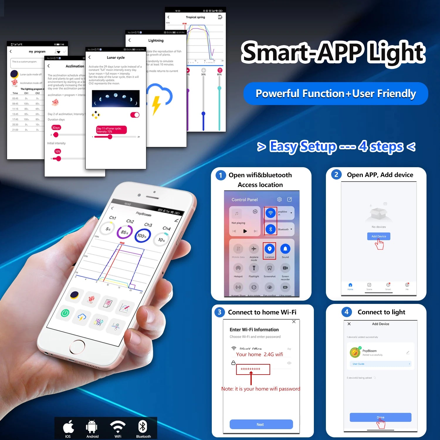 - 4 channels with 1% dimmable for precise color and intensity tuning